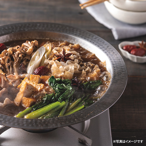 - 黒養なべ:【つゆ】醤油(国内製造)、デキストリン、オイスターソース、おろしにんにく、おろし生姜、植物油脂、がらスープ、豆板醤/調味料(アミノ酸等)、グリシン、酢酸Na、カラメル色素、(一部に小麦・卵・大豆・鶏肉・豚肉・ごまを含む)