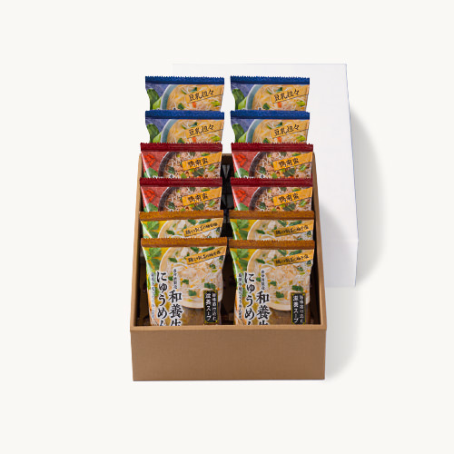 - 鶏とゆばの柚子塩:そうめん(小麦を含む、国内製造)、デキストリン、鶏肉、ゆば(大豆を含む)、チキンエキス調味料、チキンエキス、でん粉、ゆず皮、みつば、食塩、かつお節エキス、酵母エキス、ゼラチン、昆布エキス、高麗人参粉末/増粘剤(キサンタン)、酸化防止剤(V.E)