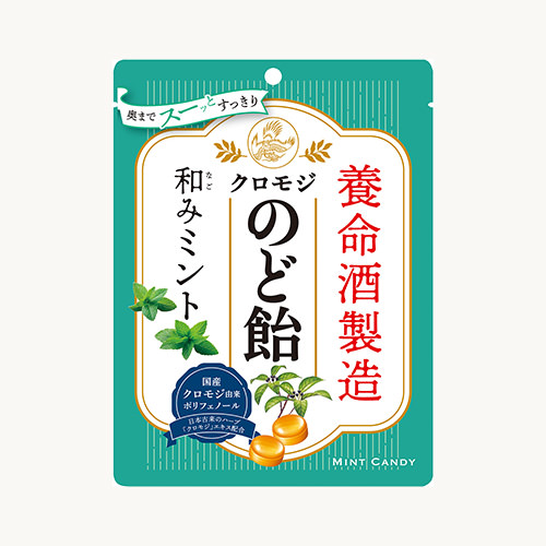 - 養命酒製造クロモジのど飴和みミント:水飴(国内製造)、砂糖、クロモジエキス末、食用油脂/香料、乳化剤
